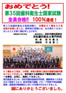 R8.3.26 歯科衛生士国家試験全員合格|浜松歯科衛生士専門学校|浜松市の歯科衛生士専門学校