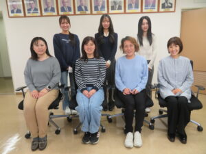 R8年度同窓会役員です。よろしくお願いします。 前列左より ・監事 菅沼唯見さん 15期生(前副会長) ・監事 柴山奈都子さん 15期生(前会長) ・会長 鈴木桂子さん 16期生 ・副会長 中川実里さん 16期生 後列左より 41期生の会計さんです ・田中優衣さん ・網中陽菜さん ・内山瑠姫愛さん